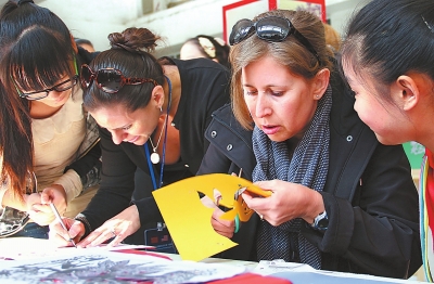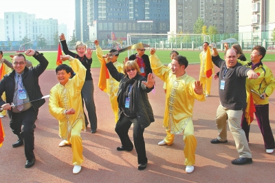 96中的師生們?yōu)槊绹腿朔钌狭斯殴~、葫蘆絲、豫劇、太極拳、毽球、書法、剪紙、茶藝等極具中國韻味和河南特色的精彩表演。許多美國朋友還參與其中,學(xué)古箏、秀太極、踢毽球,甚至用起了毛筆。在觀摩了96中的課堂教學(xué)情況后,來自紐約州的東西方國際學(xué)校校長本·謝爾曼說:“這所學(xué)校環(huán)境優(yōu)美,孩子們的英語都很棒!