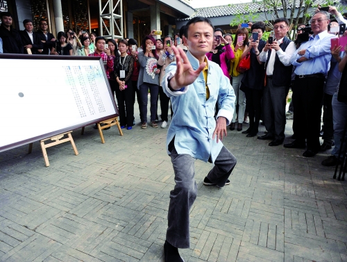 今年5月,太極禪苑在杭州西溪揭牌,馬云現(xiàn)場表演太極拳