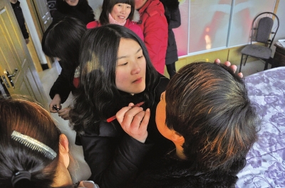 沒(méi)有專業(yè)的化妝師,村民吳紅的女兒義務(wù)為大家化妝