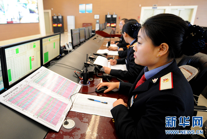 1月15日,鄭州火車東站綜控室的工作人員在查看列車運(yùn)行時(shí)刻表。
