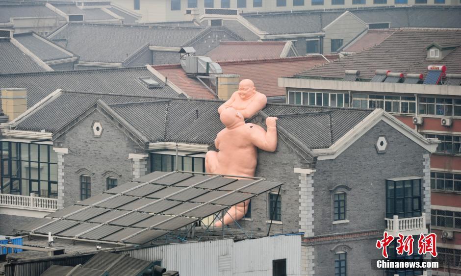央廣網(wǎng)河南分網(wǎng)消息 據(jù)中國(guó)新聞網(wǎng)報(bào)道:1月19日,兩尊“裸佛攀房”藝術(shù)雕塑亮相濟(jì)南,“小沙彌”憨態(tài)可掬的攀房造型吸引不少路人觀看。