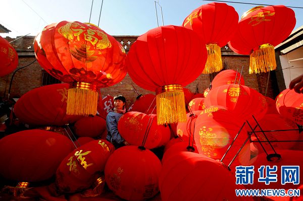 1月20日,河南省溫縣北冷鄉(xiāng)許北張村村民在整理做好的大紅燈籠。