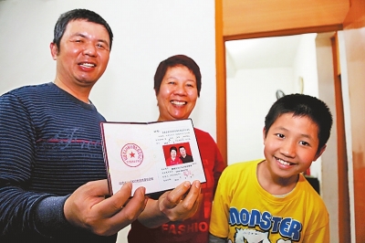 4月8日,泉州市民傅全民一家領(lǐng)到了“單獨(dú)兩孩”生育證。新華社發(fā)