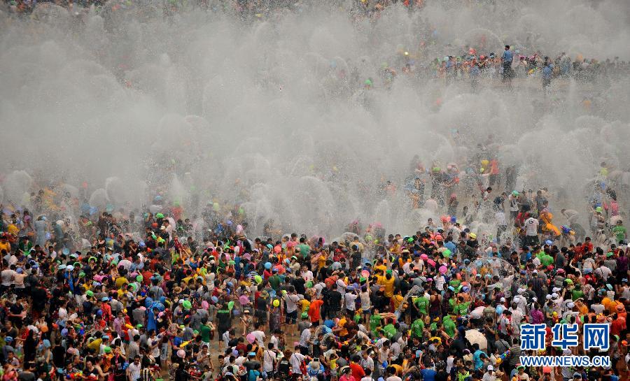 央廣網(wǎng)河南分網(wǎng)消息 據(jù)新華網(wǎng)報(bào)道:4月15日,數(shù)萬名當(dāng)?shù)厝罕姾陀慰驮谠颇鲜∥麟p版納州景洪市潑水廣場上潑水狂歡。當(dāng)日是2014年西雙版納潑水節(jié),也是傣歷1376年新年節(jié)系列活動的最后一天,數(shù)萬名當(dāng)?shù)厝罕姶┥瞎?jié)日盛裝,和外地游客一起在云南省西雙版納傣族自治州景洪市互相潑水,互祝吉祥、幸福、健康。潑水節(jié)是傣族人民送舊迎新的傳統(tǒng)節(jié)日,已有上千年歷史。(新華社記者 藺以光 攝)