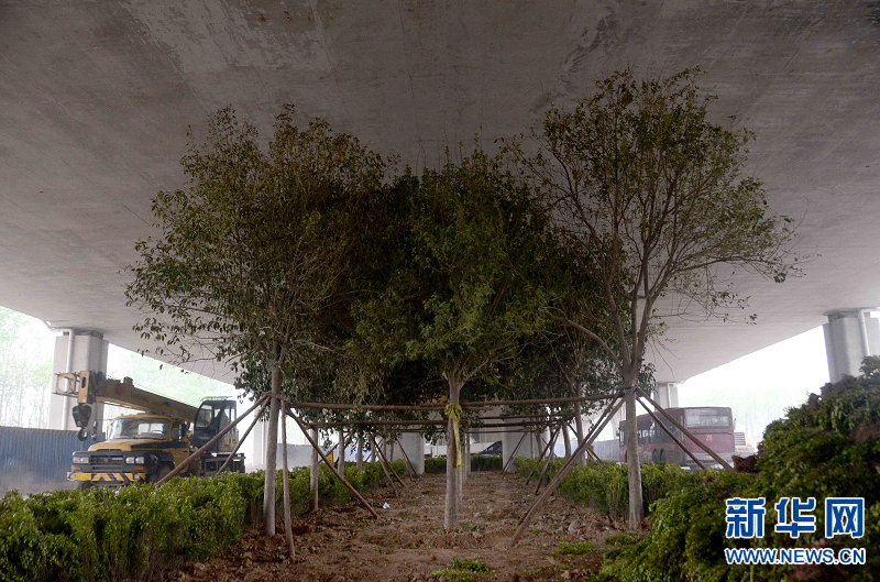 央廣網(wǎng)河南分網(wǎng)消息 據(jù)新華網(wǎng)河南頻道報(bào)道:近日,鄭州市南三環(huán)快速路立交橋下,新栽種的樹木引起大家的關(guān)注。記者在鄭州市紫辰路與南三環(huán)交叉口向西,南三環(huán)快速路公交橋下看到了栽種在橋下的樹木。這些樹木高度幾乎都與立交橋底齊高,新移栽的樹木直徑超過10厘米,高度約6米。不少人心存疑惑,這些樹木是否適合在橋下的環(huán)境生長?如果樹木瘋長會(huì)不會(huì)危害到橋梁的安全?園林部門回應(yīng),此次在橋下種植的植物耐陰且生長緩慢,在橋下完全可以成活并且不會(huì)對橋體造成威脅。(新華社記者 李安攝)