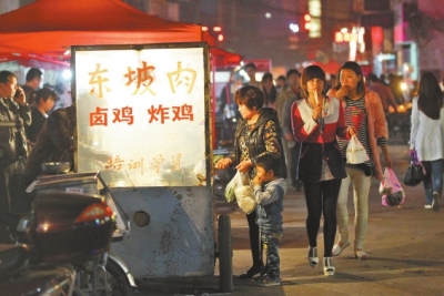 除了真真切切地滿足味蕾,城中村的小吃亦是極大的視覺(jué)享受。特別是在夏天晚上,長(zhǎng)長(zhǎng)的街道兩側(cè)盡是露天擺放的各色小吃,遠(yuǎn)遠(yuǎn)望去頗為壯觀,什么開(kāi)封的雞血湯,豫東的吊爐燒餅,色澤鮮亮的道口燒雞……各色美食在燈光下散發(fā)出誘人的味道。置身其間,目光所至,盡是人間草根美食,常有目不暇接之感,仿佛顧盼之間,就已感受了這些美味。