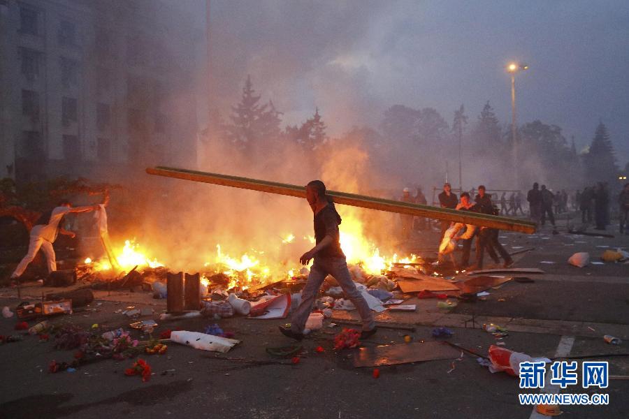 央廣網(wǎng)河南分網(wǎng)消息 據(jù)新華網(wǎng)報(bào)道:繼烏克蘭軍警5月2日凌晨對(duì)烏東部城市斯拉維揚(yáng)斯克發(fā)起攻勢(shì)后,烏南部黑海沿岸城市敖德薩同日發(fā)生親政府與反政府兩派民眾沖突,造成嚴(yán)重人員傷亡。烏克蘭東部局勢(shì)持續(xù)緊張。一名歐盟成員國(guó)駐布魯塞爾的高級(jí)外交官對(duì)新華社記者表示,他認(rèn)為,隨著烏克蘭軍方2日(向反政府武裝人員)發(fā)起攻擊,烏克蘭內(nèi)戰(zhàn)已經(jīng)打響。5月2日是烏克蘭危機(jī)發(fā)生質(zhì)變的節(jié)點(diǎn)。俄羅斯聯(lián)邦委員會(huì)國(guó)際事務(wù)委員會(huì)副主席克里莫夫認(rèn)為,在敖德薩和烏克蘭東南部發(fā)生的流血事件可以視為烏克蘭內(nèi)戰(zhàn)的序幕。圖為5月2日,在烏克蘭南部城市敖德薩,工會(huì)大樓附近的一個(gè)臨時(shí)帳篷被燒毀。烏克蘭南部黑海沿岸城市敖德薩2日發(fā)生親政府與反政府兩派民眾沖突,導(dǎo)致43人死亡。新華社發(fā)