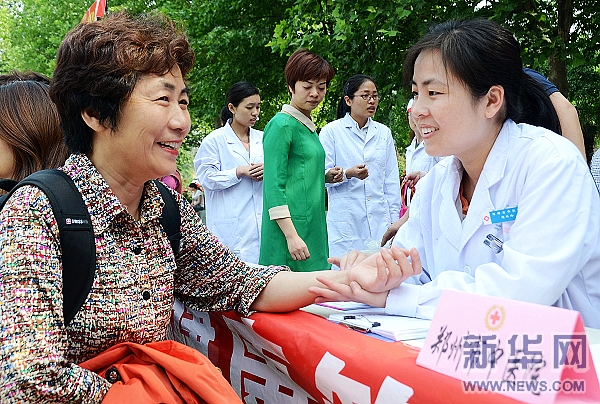 央廣網(wǎng)河南分網(wǎng)消息 據(jù)新華網(wǎng)河南頻道報(bào)道:當(dāng)日是世界紅十字日,河南省紅十字會(huì)、鄭州市紅十字會(huì)等單位聯(lián)合開展“紅十字志愿服務(wù)廣場(chǎng)展示活動(dòng)”,30余支紅十字志愿者隊(duì)伍舉行了宣誓儀式,通過宣傳手冊(cè)、展板等方式向市民宣傳紅十字知識(shí)。來自省會(huì)各醫(yī)院的知名專家現(xiàn)場(chǎng)為市民進(jìn)行義診,并向市民介紹醫(yī)療常識(shí)及急救方法。(記者 李安 攝)
