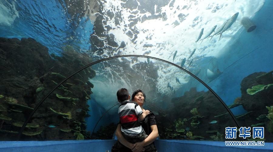 2011年7月15日,小輝媽媽帶著小輝來到合肥海洋世界看海洋動(dòng)物。顧小輝是合肥一所孤獨(dú)癥兒童康復(fù)訓(xùn)練學(xué)校的學(xué)生。為了給患孤獨(dú)癥的小輝看病,小輝的媽媽帶著他從金寨縣的農(nóng)村來到合肥,踏上漫長(zhǎng)而艱辛的康復(fù)訓(xùn)練之路。(記者 劉軍喜攝)