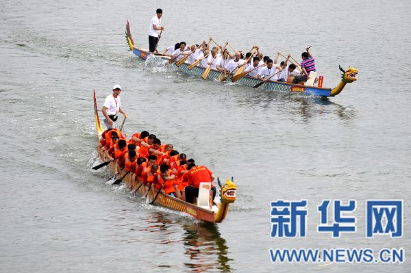 央廣網(wǎng)河南分網(wǎng)消息 據(jù)新華網(wǎng)河南頻道報道:當日,第三屆中華軒轅龍舟大賽在鄭州東區(qū)的如意湖舉行,共有包括16支家庭代表隊在內(nèi)的40余支隊伍參加龍舟競速比賽,選手們在湖面上劈波斬浪,相競爭先,吸引了數(shù)萬群眾前來觀看。