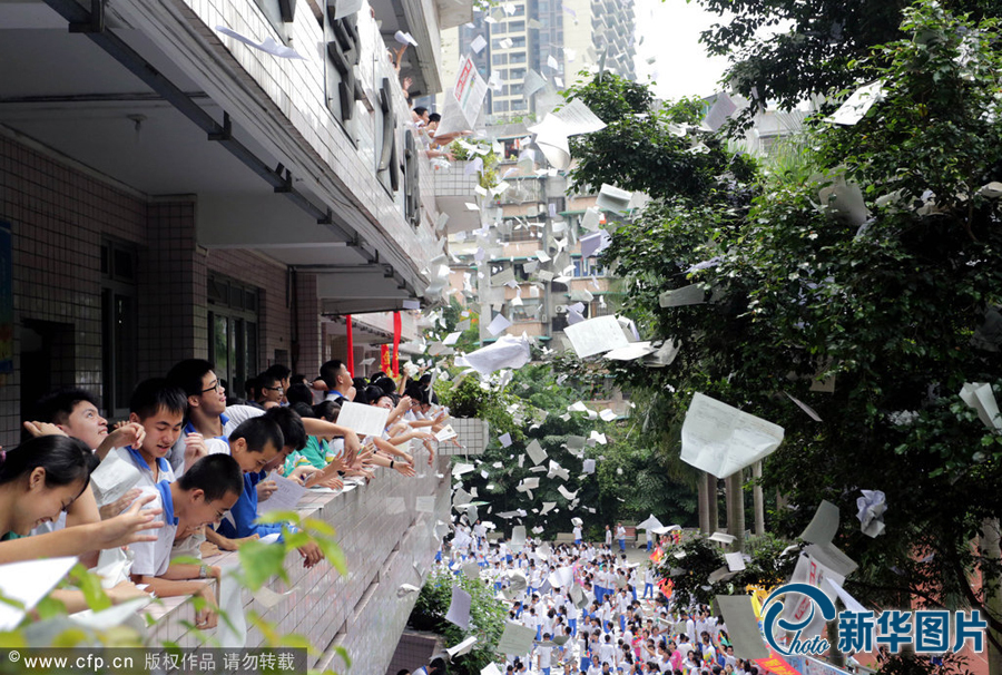 2014年06月04日上午,廣州市,廣州大學(xué)附屬中學(xué)高三、初三學(xué)生將廢棄試卷扔出教室,釋放壓力,迎接即將到來(lái)的考試。