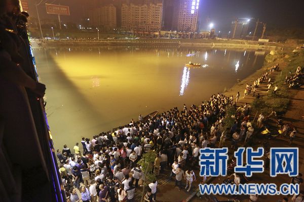 6月5日凌晨,救援人員在湖南省婁底市二大橋搜救殷曉非遺體。
