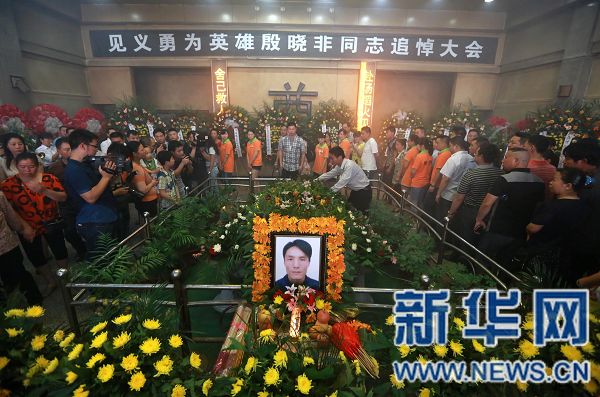 央廣網(wǎng)河南分網(wǎng)消息 據(jù)新華網(wǎng)報(bào)道:當(dāng)日,湖南省婁底市殯儀館舉行見(jiàn)義勇為英雄殷曉非追悼會(huì),近萬(wàn)群眾自發(fā)前來(lái)和英雄遺體告別并捐款。追悼會(huì)結(jié)束后,殷曉非遺體在婁底火化,之后送回河南南陽(yáng)老家安葬。