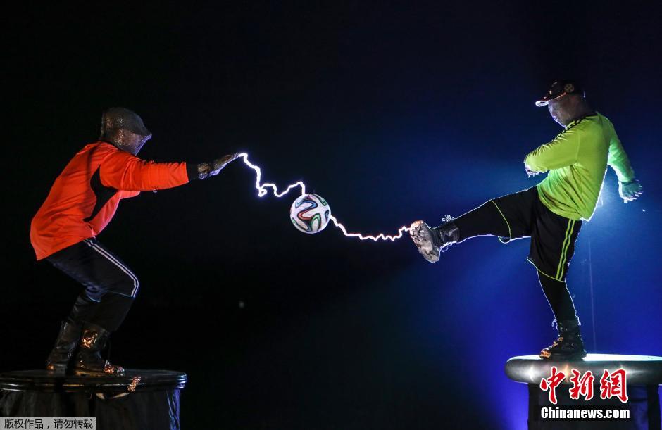 隨著這幾年技術的改進,王增祥用于制造閃電的特斯拉線圈設備日趨完善。人身著特制的鐵衣站在上面表演各種炫酷的動作,與閃電共舞。為了讓球員的腳尖與球之間能產(chǎn)生更美的電弧,鞋面上也要貼一層特殊的材料。他還對足球做了特殊處理——給足球也穿上一層“鐵衣”,皮質的足球才不至于在閃電中被燒焦。