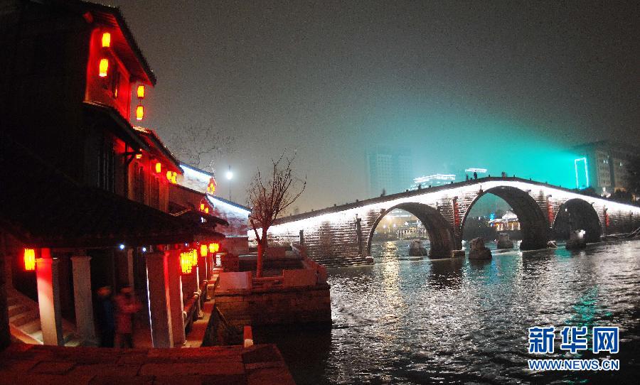 杭州市運河橋西歷史街區(qū)的仿古建筑上掛滿紅燈籠(2009年2月5日攝)。 6月22日,正在卡塔爾首都多哈召開的第38屆世界遺產(chǎn)大會審議并通過中國提交的“大運河”申遺申請。至此,“大運河”作為文化遺產(chǎn)正式列入世界遺產(chǎn)名錄。新華社發(fā)