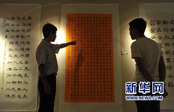 央廣網(wǎng)河南分網(wǎng)消息 據(jù)新華網(wǎng)報(bào)道:“慶祝建黨九十三周年三河、平谷、大廠書畫作品聯(lián)展”日前在河北省三河市文化館亮相,共展出來自三地的書畫愛好者創(chuàng)作的130余幅書法和繪畫作品。新華社記者魯鵬攝