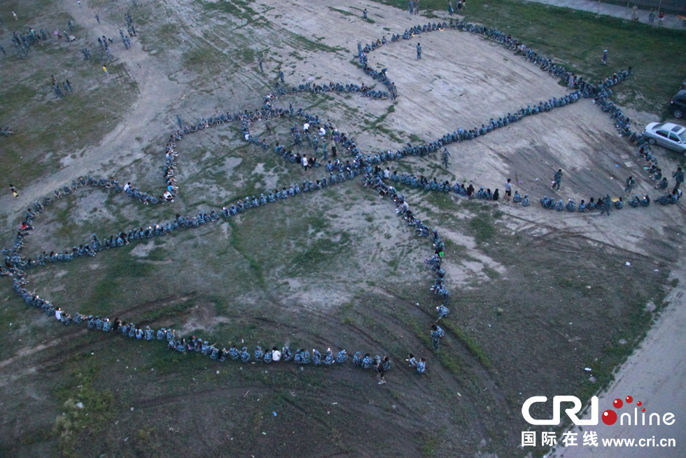 2014年7月2日,長春市某所高校內一位同學發(fā)動近千名同學向女同學求愛。同學們拼湊成巨大的心,一箭穿心等造型,場面十分壯觀。