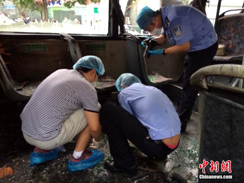 央廣網(wǎng)河南分網(wǎng)消息 據(jù)中新網(wǎng)報(bào)道:民警經(jīng)調(diào)查獲悉,事件中的燃燒液體有香蕉水成分,已初步鎖定放火嫌疑人為公交車(chē)內(nèi)被燒成重傷的一名男子。目前,該事件共導(dǎo)致32人受傷,目前仍有29人在院治療,其中重傷15人。圖為7月6日,工作人員在事故車(chē)輛上采證。(中新社發(fā) 陳福 攝)