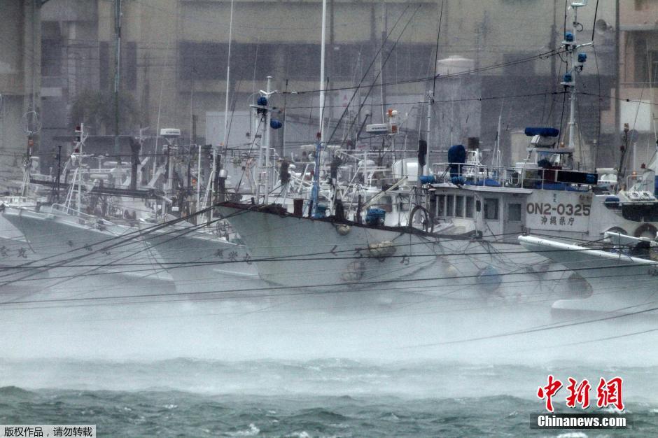 當(dāng)?shù)貢r(shí)間7月8日,日本沖繩,超強(qiáng)臺(tái)風(fēng)“浣熊”襲擊日本,船只靠港避風(fēng)。