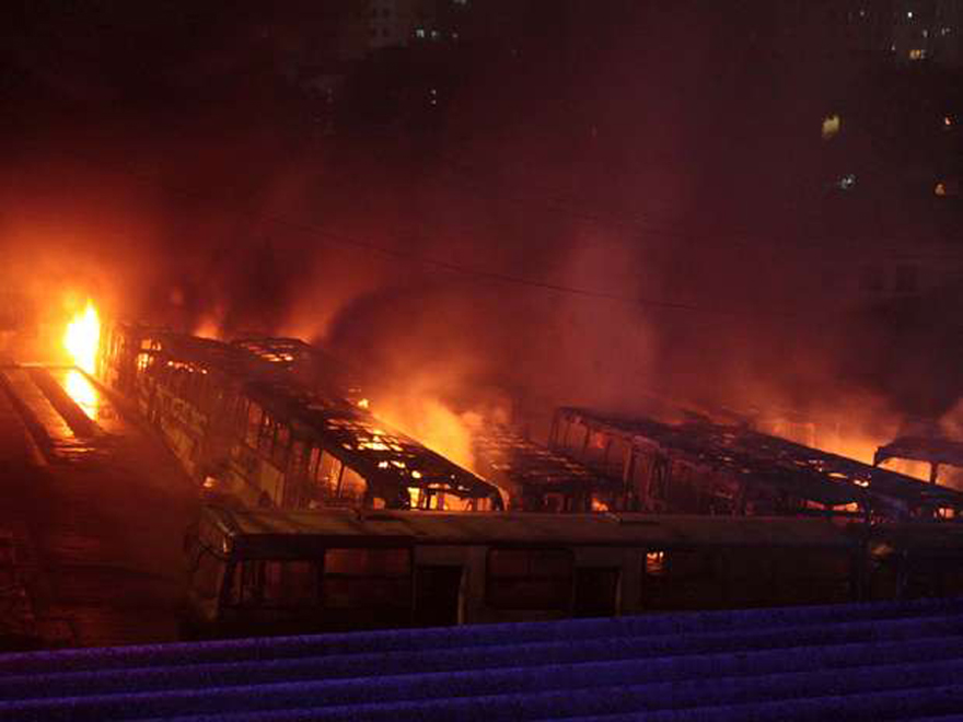 據(jù)悉,當(dāng)晚7點20分左右,圣保羅市市區(qū)一處公交車站內(nèi)的20輛公交被點燃,19輛公交被完全燒毀,一輛公交車部分車體被燒。