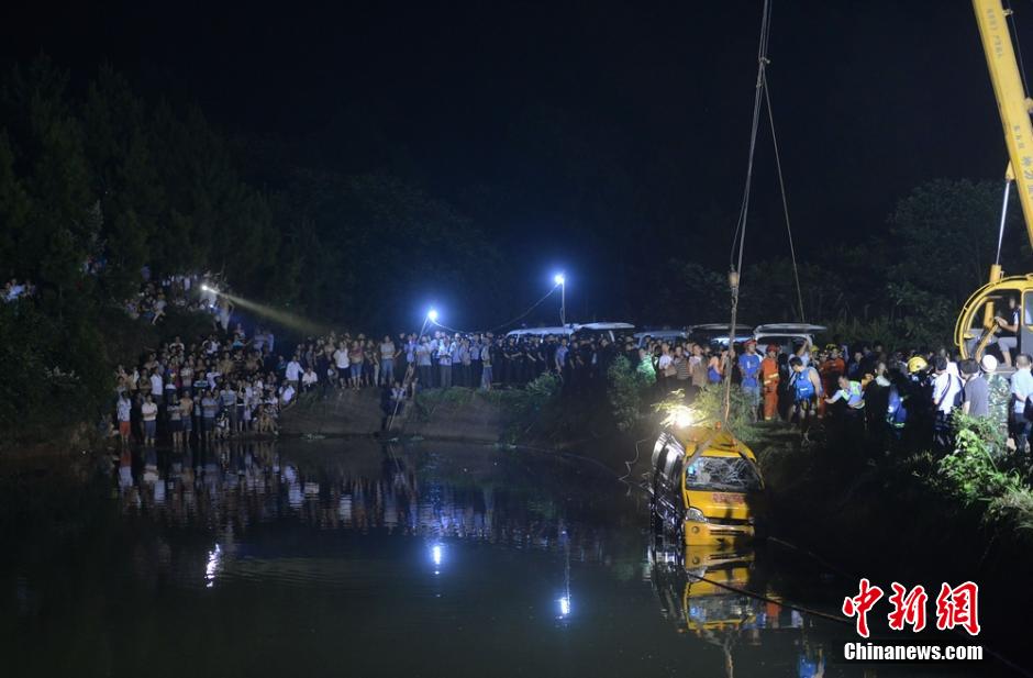 7月11日凌晨,消防官兵正在全力打撈落水校車。
