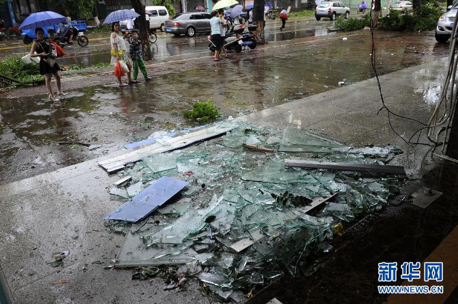 7月19日,廣東徐聞縣城一家旅館的玻璃幕墻完全破碎。 7月18日19時30分前后,今年第9號臺風(fēng)“威馬遜”在廣東湛江徐聞縣龍?zhí)伶?zhèn)沿海再次登陸,登陸時中心附近最大風(fēng)力17級(超強臺風(fēng)級)!巴R遜”過境后,廣東湛江徐聞縣城內(nèi)滿目瘡痍,電力等城市基礎(chǔ)設(shè)施遭受重創(chuàng)。(新華社 記者 梁旭 攝)