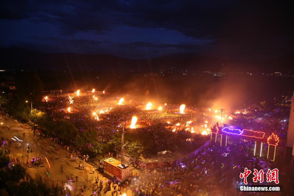 央廣網(wǎng)河南分網(wǎng)消息 據(jù)中新網(wǎng)報(bào)道:7月20日,一年一度的彝族傳統(tǒng)民族節(jié)日——四川涼山彝族火把節(jié)在州府西昌火熱上演,吸引來(lái)自云南、貴州、成都、重慶、攀枝花等地?cái)?shù)十萬(wàn)游客前來(lái)“打火把”狂歡,來(lái)自天南地北的游客圍著熊熊燃燒的篝火手拉手縱情歌舞,盡情釋放旅游途中的歡快。今年西昌舉辦的涼山彝族火把節(jié)以原生態(tài)為主題,分別在西昌城郊的高枧、小廟、洛古波等處設(shè)有“打火把”狂歡場(chǎng)地;鸢芽駳g夜是當(dāng)?shù)匾妥寤鸢压?jié)的重頭戲,據(jù)官方統(tǒng)計(jì),當(dāng)晚的火把狂歡夜吸引了40多萬(wàn)人參加。四川涼山是中國(guó)最大的彝族聚居區(qū),每年農(nóng)歷6月24日左右是當(dāng)?shù)匾妥迦罕娺^(guò)火把節(jié)的日子,一般持續(xù)3至5天,期間將開展選美、摔跤、爬桿、斗牛、賽馬、打火把等民族活動(dòng)。涼山彝族火把節(jié)近年來(lái)也被稱為“東方狂歡節(jié)”。(高寒 攝)