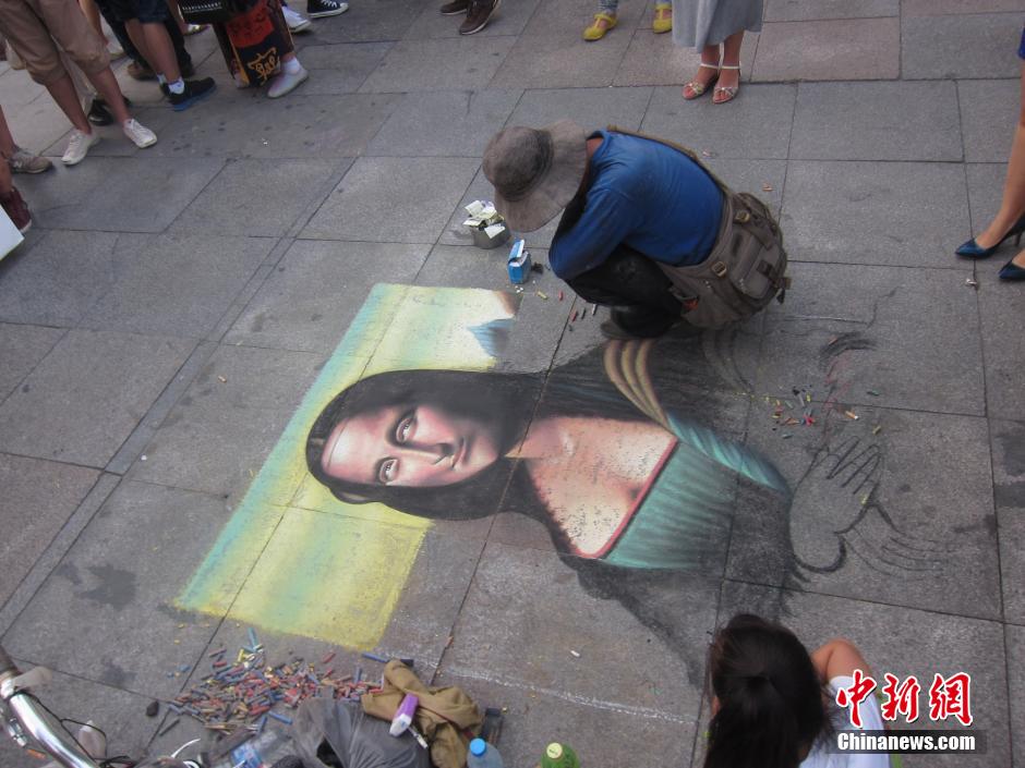 央廣網(wǎng)河南分網(wǎng)消息 據(jù)中新網(wǎng)報(bào)道:8月24日,哈爾濱市街頭一男子在地上用各種顏色的粉筆繪制蒙娜麗莎畫(huà)像,吸引了許多路人觀看。(中新社發(fā) 靖陽(yáng) 攝)
