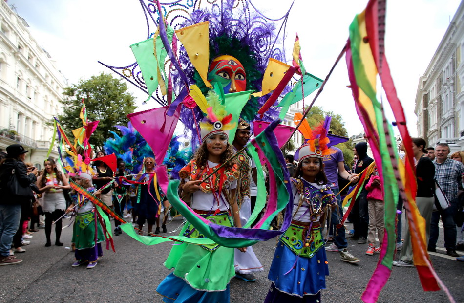 8月24日,表演者參加在英國倫敦西區(qū)舉行的諾丁山狂歡節(jié)兒童日大游行。