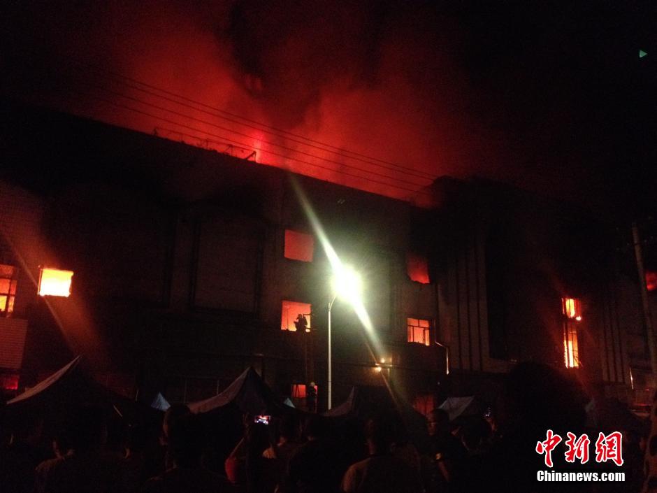哈爾濱市道外區(qū)仁里街馬克威商場發(fā)生火情,該商場總共有三層,目前基本全部過火,現(xiàn)場仍有明火并且有大量的濃煙冒出,消防部門正在全力撲救。圖為火勢現(xiàn)場。中新社發(fā) 魏來 攝