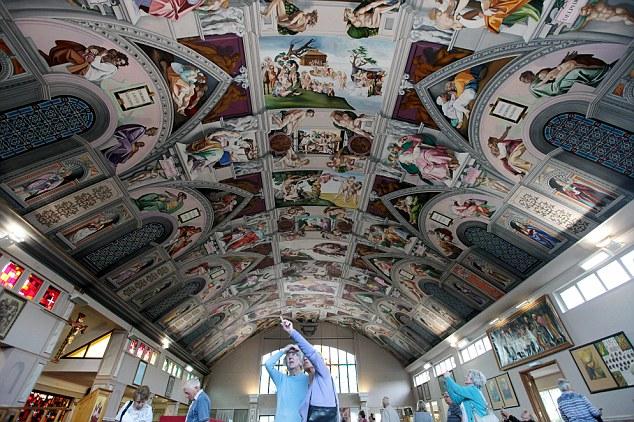 據(jù)英國《每日郵報(bào)》9月2日?qǐng)?bào)道(具體拍攝時(shí)間不詳),位于英國蘇塞克斯的殉道圣人天主教堂因完美復(fù)制了梵蒂岡西斯廷教堂米開朗琪羅的畫作而廣為人知,其內(nèi)部天花板上繪制了西斯廷教堂米開朗琪羅的作品,這也是全世界唯一的復(fù)制本。許多來自世界各地的游客紛紛前來觀賞。這一創(chuàng)舉的締造者只是一名以繪制廣告牌、標(biāo)語為生的工人,他在1987年游覽過梵蒂岡之后,出于興趣和熱愛,便開始這項(xiàng)浩大工程,總耗時(shí)5年半。(網(wǎng)頁截圖)