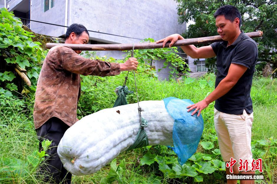 央廣網(wǎng)河南分網(wǎng)消息 據(jù)中新網(wǎng)報(bào)道:近日,福建寧德市蕉城區(qū)霍童鎮(zhèn)興賢村一農(nóng)戶種出一個(gè)重達(dá)173.5斤的巨型冬瓜,體長(zhǎng)150厘米。據(jù)農(nóng)戶介紹,家里以往每年都能種出20多個(gè)七八十斤重的冬瓜,長(zhǎng)出這么大還是頭一回。