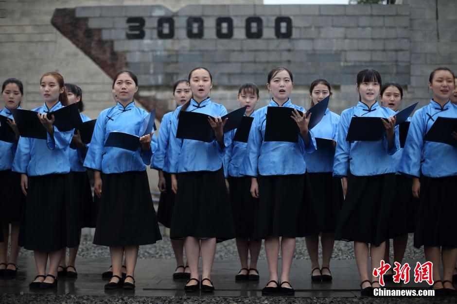 9月18日,侵華日軍南京大屠殺遇難同胞紀(jì)念館悼念廣場(chǎng)上,南京曉莊學(xué)院新聞傳播學(xué)院的34名大學(xué)生身著上世紀(jì)一二十年代的學(xué)生裝,在“勿忘九一八”南京青少年詩(shī)歌朗誦會(huì)暨“勿忘國(guó)恥·圓夢(mèng)中華”朗誦比賽啟動(dòng)儀式上朗誦《松花江上》、《南京!南京!》等詩(shī)歌。當(dāng)日是“九一八事變”83周年,中國(guó)各地紛紛舉辦各種形式的紀(jì)念活動(dòng)。中新社發(fā) 泱波 攝