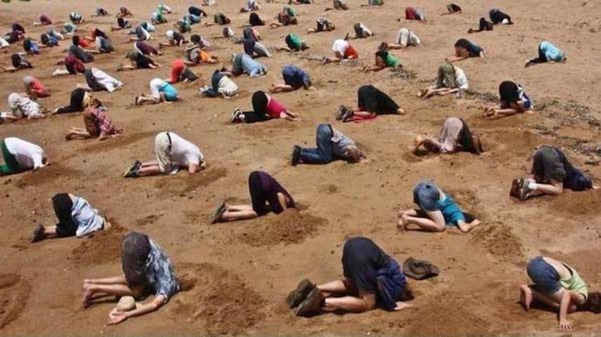 澳大利亞環(huán)境保護組織日前用一張“一大群人將頭埋在沙中“的圖片引起了全球注意,該組織認(rèn)為這張圖可以總結(jié)澳總理阿博特對應(yīng)對氣候變化的態(tài)度。