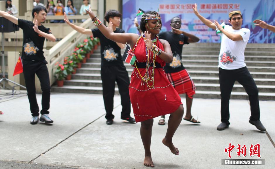 10月20日,中外留學(xué)生共同跳起神曲“小蘋果”。當(dāng)日,南京農(nóng)業(yè)大學(xué)舉辦第七屆國(guó)際文化節(jié),來(lái)自巴基斯坦、韓國(guó)、科尼亞、南非、巴西等四十多個(gè)國(guó)家的外籍教師、留學(xué)生與中國(guó)師生歡聚一堂,通過(guò)文化風(fēng)情、異域美食品嘗、民族舞蹈等方面的展示,加深相互間的了解和友誼。據(jù)悉,在為期兩個(gè)多月的國(guó)際文化節(jié)期間,還將舉辦趣味運(yùn)動(dòng)會(huì)、文化體驗(yàn)、文藝晚會(huì)等多項(xiàng)活動(dòng)。 中新社發(fā) 泱波 攝