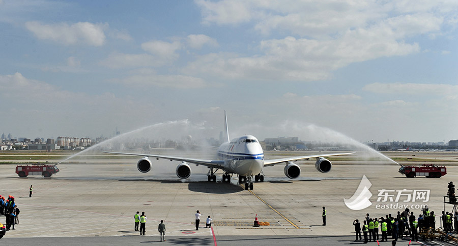 央廣網(wǎng)河南分網(wǎng)消息 據(jù)東方網(wǎng)報道:10月28日上午,有著“空中皇后”美譽(yù)的波音747-8型飛機(jī)首次執(zhí)飛京滬航線。上海虹橋機(jī)場舉行了“水門迎接”儀式。國航成為運(yùn)營國內(nèi)首架747-8飛機(jī)的航空公司。這款新機(jī)型機(jī)身長76.4米,比傳統(tǒng)的波音747-400的機(jī)身長5.6米,航程可達(dá)14815公里。據(jù)悉,28日起國航每天用這一新機(jī)型執(zhí)行一個往返京滬航班,11月7日起增加每天2個往返。隨著今天747-8加入京滬航線,這條“黃金航線”上的飛機(jī)也更加呈現(xiàn)出“大牌云集”的勢頭,例如海航采用波音787“夢想飛機(jī)”,東航、國航、南航多采用空客330等大飛機(jī)。京滬航線目前就成以上的航班已采用載客量較大的寬體機(jī)型。