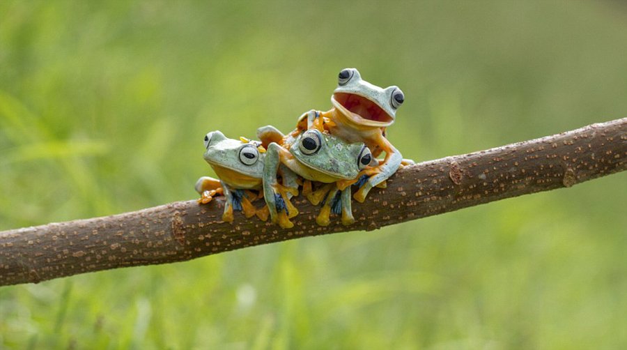 攝影師Hendy Mp在印度尼西亞拍到了三只樹蛙“疊羅漢”的搞笑畫面。