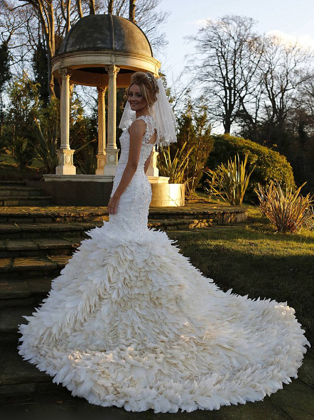 央廣網(wǎng)河南分網(wǎng)消息 英國(guó)女子Cheryl McGlynn為了能穿上自己夢(mèng)想中的完美婚紗,花費(fèi)200小時(shí),手工縫制22000片鵝毛,為自己自造了一件獨(dú)一無(wú)二的婚紗。