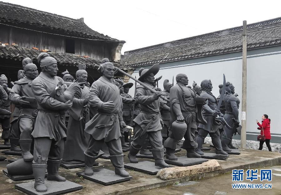 央廣網(wǎng)河南分網(wǎng)消息 從2008年開始,深愛“水滸”故事的浙江寧波奉化市尚田鎮(zhèn)鳴雁村泥塑藝人朱茂盛開始創(chuàng)作“水滸”108將泥塑。經(jīng)過幾年的努力,目前,朱茂盛已經(jīng)創(chuàng)作完成102尊泥塑,余下的6尊人像已基本成形,預計于今年4月全部完成。這些水滸人物泥塑每個身高2米左右,重約250公斤。新華社發(fā)(胡學軍 攝)