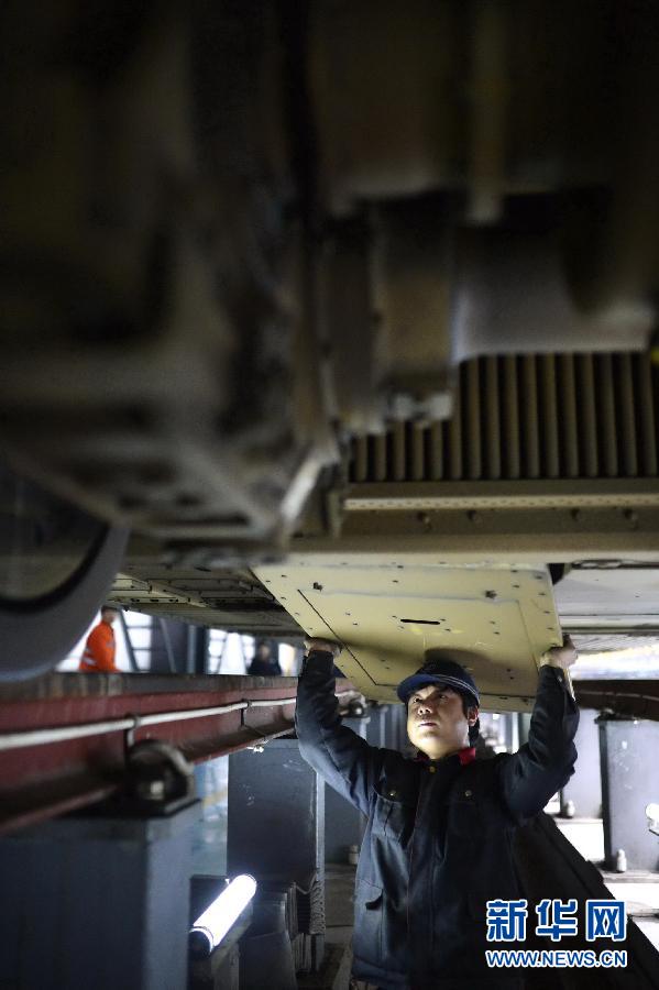 央廣網(wǎng)河南分網(wǎng)消息 2月4日,2015年春運(yùn)將正式拉開(kāi)帷幕。在江西南昌,由于高鐵列車(chē)將第一次參與到鐵路春運(yùn)中,南昌西客站、南昌車(chē)輛段等多個(gè)部門(mén)都在抓緊時(shí)間協(xié)調(diào)組織、維護(hù)車(chē)輛,為春運(yùn)做最后準(zhǔn)備。預(yù)計(jì)今年從南昌西客站出發(fā)的旅客將達(dá)114.5萬(wàn)人次,同比增加85.6萬(wàn)人次,增長(zhǎng)幅度達(dá)296.2%。新華社記者 周密 攝