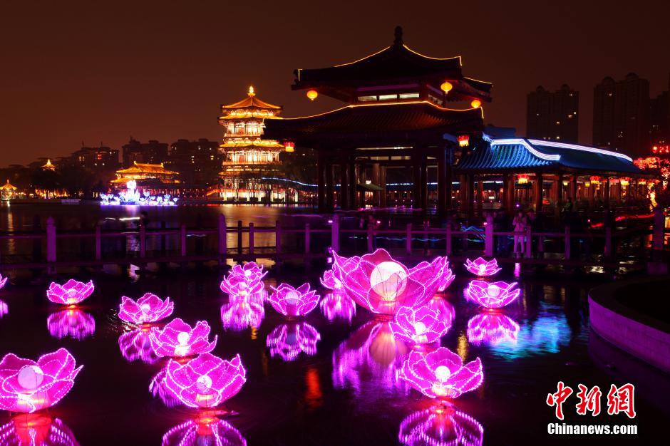 西安舉辦新春傳統(tǒng)水陸燈會迎元宵