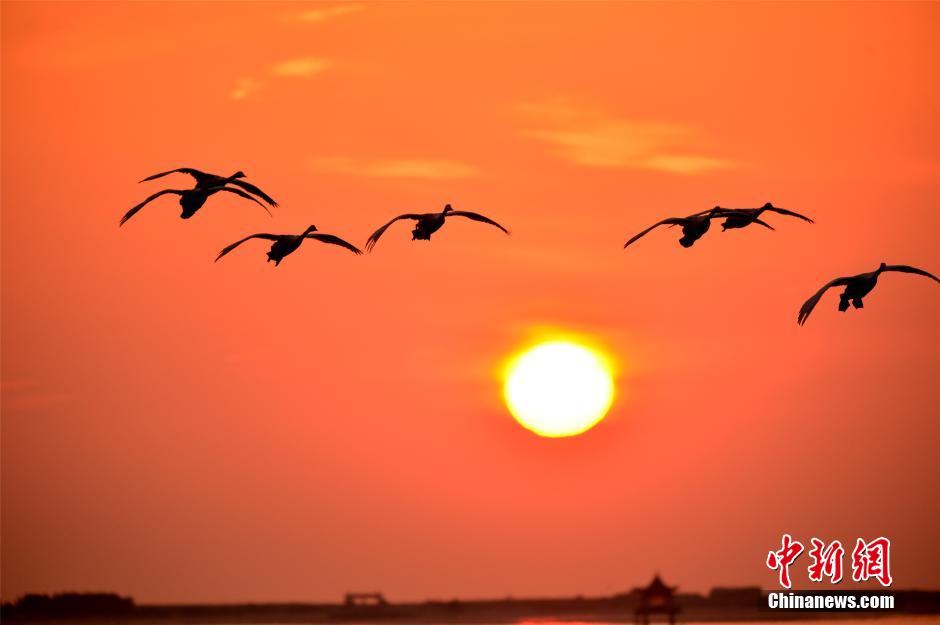 央廣網(wǎng)河南分網(wǎng)消息 3月5日,山東省榮成市成山天鵝湖,美麗的大天鵝在朝陽下啟程飛走。時(shí)近驚蟄,在亞洲最大的天鵝冬季棲息地山東省榮成市成山天鵝湖,越冬天鵝開始陸續(xù)向北方的夏季棲息地遷徙。據(jù)了解,每年11月,有上萬只來自俄羅斯西伯利亞等地區(qū)和我國(guó)新疆等地的大天鵝遷來此地越冬,并于次年3月初向北方遷徙。目前約有4000多只大天鵝離開榮成。 中新社發(fā) 朱愛琴 攝 圖片來源:CNSPHOTO