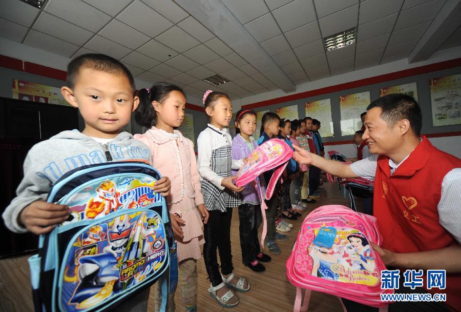 央廣網(wǎng)河南分網(wǎng)消息 5月29日,志愿者向山東昌樂(lè)縣朱劉街道小學(xué)學(xué)生贈(zèng)送書(shū)包等學(xué)習(xí)用品。在“六一”國(guó)際兒童節(jié)到來(lái)之際,當(dāng)?shù)剞r(nóng)村小學(xué)的留守兒童和外來(lái)務(wù)工人員子女收到關(guān)愛(ài)兒童的志愿者和機(jī)構(gòu)送上的書(shū)包、筆記本、鉛筆等學(xué)習(xí)用品,感受到一份節(jié)日的關(guān)愛(ài)。李曉果攝