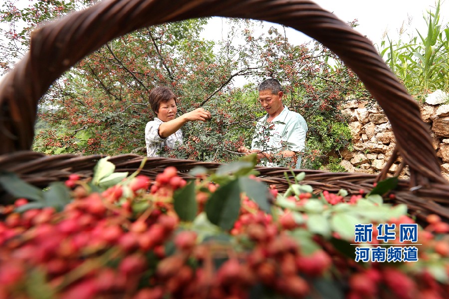 央廣網(wǎng)河南分網(wǎng)消息 2015年8月11日,河南省林州市東崗鎮(zhèn)中盧寨村西南山坡地火龍崗,花椒種植大戶付愛香與丈夫正在采摘優(yōu)質(zhì)“大紅袍”,豐收的喜悅寫在臉上。