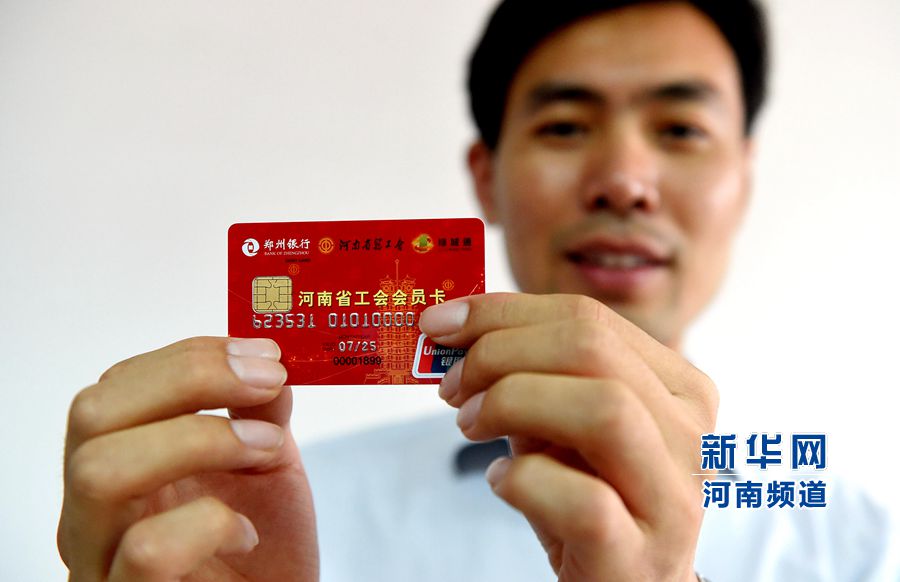 8月13日,會員展示領(lǐng)取到的河南省工會會員卡。