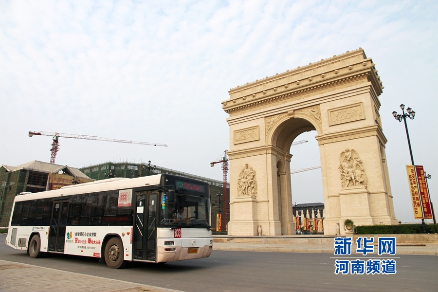 央廣網(wǎng)河南分網(wǎng)消息 鄭州市西四環(huán)一家居市場(chǎng)內(nèi)的廣場(chǎng)上,有一座雄偉的山寨版“凱旋門(mén)”格外引人注意,與法國(guó)巴黎凱旋門(mén)的造型非常類(lèi)似,