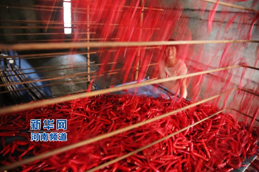 8月27日,辣椒種植合作社社員在對采摘的“訂單辣椒”利用炕房進(jìn)行烘干。