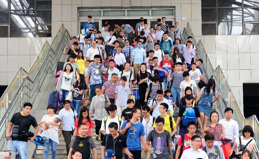 央廣網(wǎng)河南分網(wǎng)消息 8月31日,旅客們在鄭州火車站進站乘車。當(dāng)日,為期兩個月的全國鐵路暑運落下帷幕。2015年鐵路暑期運輸自7月1日起至8月31日結(jié)束,共計62天,今年鐵路暑期客流以旅游觀光、休假療養(yǎng)、學(xué)生客流為主,其中旅游客流貫穿整個暑運期間。新華社記者 李博 攝