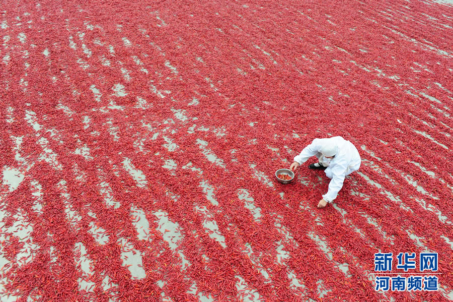 2010年以來,河南省項城市發(fā)展特色辣椒種植,推行“公司+基地+農(nóng)戶”的運作模式,種植面積已達(dá)1萬余畝,每年為農(nóng)民帶來2600多萬元收入。辣椒深加工產(chǎn)品遠(yuǎn)銷巴西、南非、德國等國家,昔日農(nóng)家餐桌上的“一碟小菜”成為農(nóng)民增收致富的紅色大產(chǎn)業(yè)。 新華社發(fā)(馮大鵬 攝)