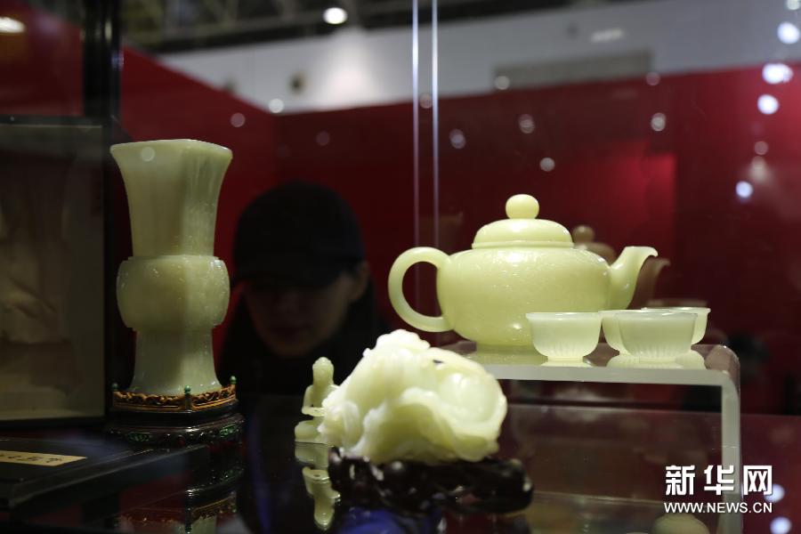 10月30日,觀眾在2015北京·中國文物國際博覽會上欣賞展出的玉擺件。